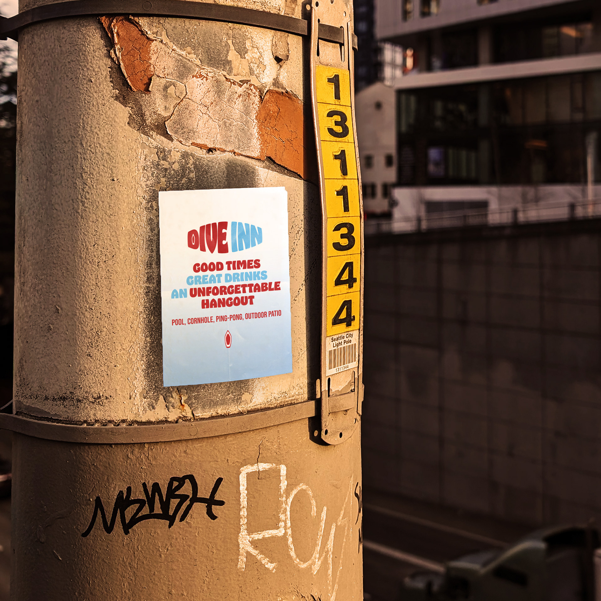 Dive Inn embraces a laid-back vibe and doesn't take itself too seriously. For the primary typeface, I selected Hobeaux Black because it's bold, quirky, and playful—just like Dive Inn itself, but not overly loud. For the secondary typeface, I went with Bebas Neue Regular, chosen for its strong legibility and the way it complements the bolder Hobeaux, creating a nice contrast between the two.